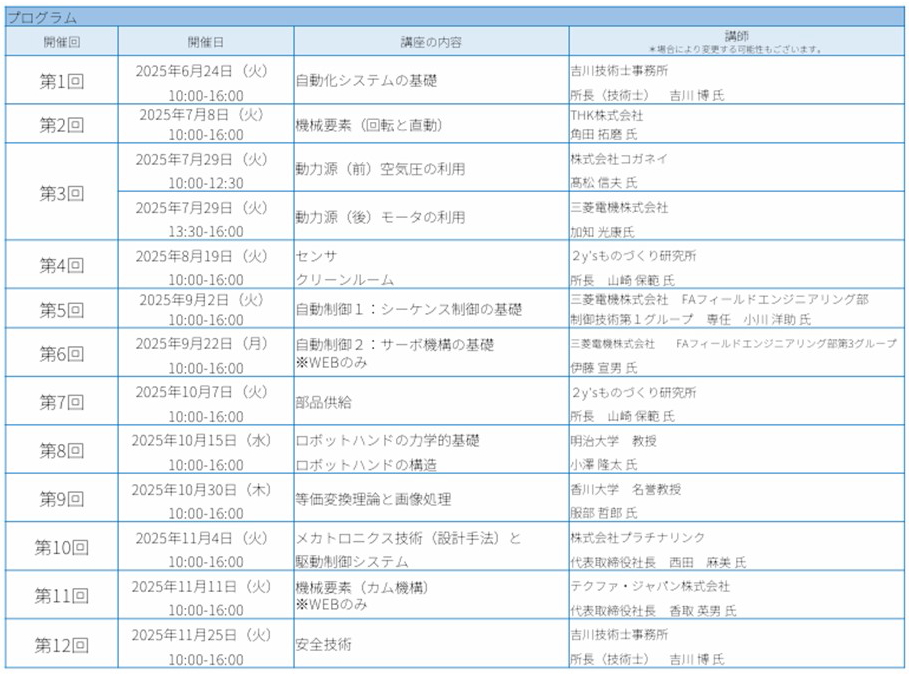 自動化基礎講座は、旧自動化推進協会から2023年に引き継がれた実践的な講座です。全12回のプログラムが用意されており、弊社は第10回目の「メカトロニクス技術(設計手法)と駆動制御システム」というテーマで出張講座を行いました。